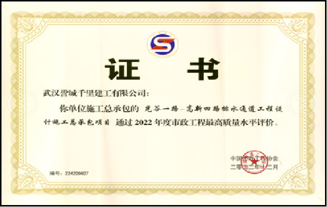 2022年度市政工程最高质量水平评价
